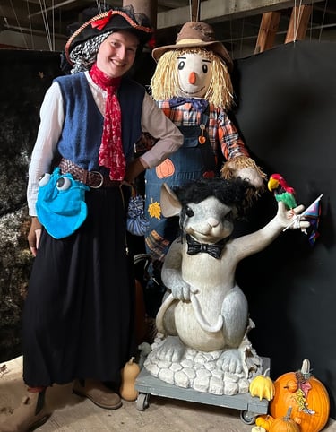 Gabannette poses at a Halloween event she is working. She is dressed in a Pirate costume.